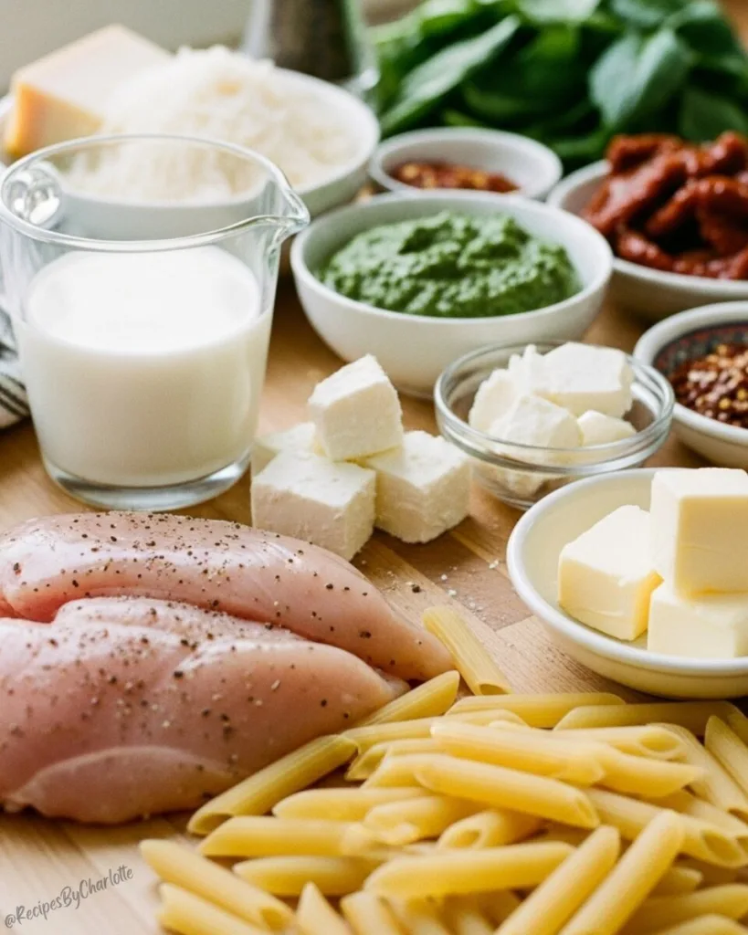 • Cream Cheese & Milk: You will obsess over making this pesto pasta with cream cheese. We combine regular milk with soft cream cheese chunks to build our dreamy sauce. This is my absolute favorite trick for a rich, creamy sauce without needing heavy cream. It melts beautifully and coats the noodles perfectly.